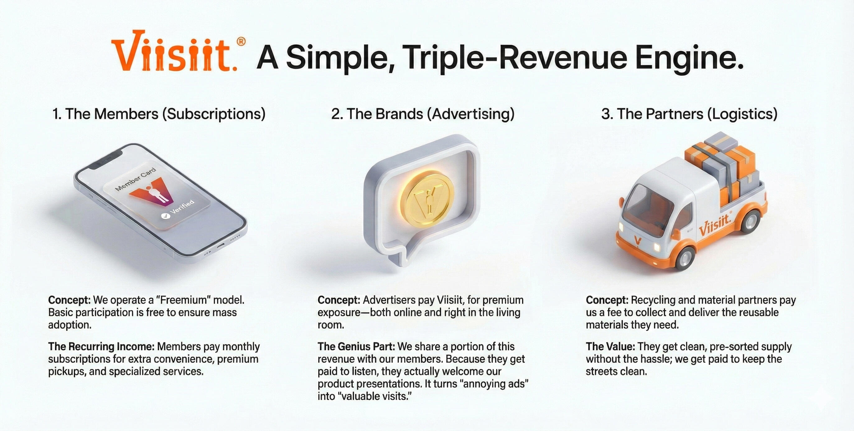 Clients: Partners who off-take collected reusable/recyclable materials.Customers: B2B/B2C advertisers seeking exposure to our members.Members: Individuals & organizations (free/paid subscribers) participating among other in our;